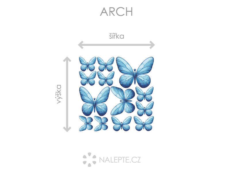 Arch = takto vám bude samolepka doručena. Každý prvek na archu je samostatná samolepka, jednotlivé části jednoduše od papírového podkladu odlepíte a nalepíte na zeď tak, aby složily výsledný motiv dle Vašich představ. Arch si můžete prohlédnout ve fotogalerii. Rozměr archu volíte v objednávce. Přehled předdefinovaných rozměrů (šířka x výška): a) arch 20 x 20 cm b) arch 30 x 30 cm c) arch 45 x 45 cm d) arch 75 x 75 cm Například nejmenší arch 20 x 20 cm obsahuje 1 ks šíře 10 cm, 2 ks šíře 8 cm, 2 ks šíře 5,5 cm, 8 ks šíře cca 4 až 4,5 cm Je možné zvolit i libovolný vlastní rozměr archu pomocí posuvníku či klikání na "Větší", "Menší"