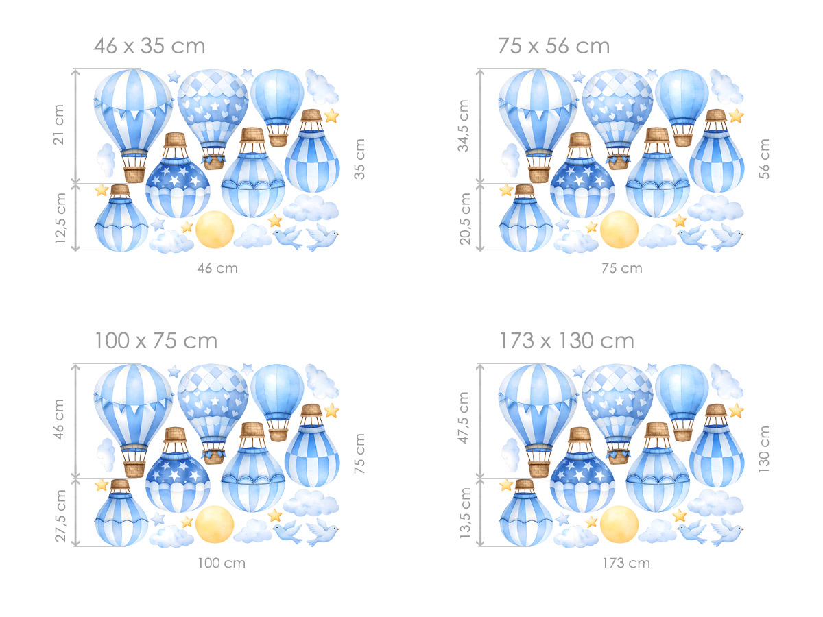 Jemné modré balóny v akvarelovém stylu přinášejí do dětského pokoje klidnou atmosféru plnou snění, lehkosti a tichých dobrodružství vysoko nad obláčky. Samolepky na zeď s motivem létajících balónů vytvářejí harmonický prostor, ve kterém se dítě může cítit bezpečně, uvolněně a zároveň svobodně rozvíjet svou fantazii při každém pohledu na nebe plné hvězd, měkkých mraků a něžných detailů. Celek působí velmi něžně a nadčasově, takže pokojíček promění v kouzelné místo odpočinku, her i večerního usínání, kde se sny vydávají na tichou cestu do oblak a každý den může začínat s pocitem radosti, klidu a dětské pohody.