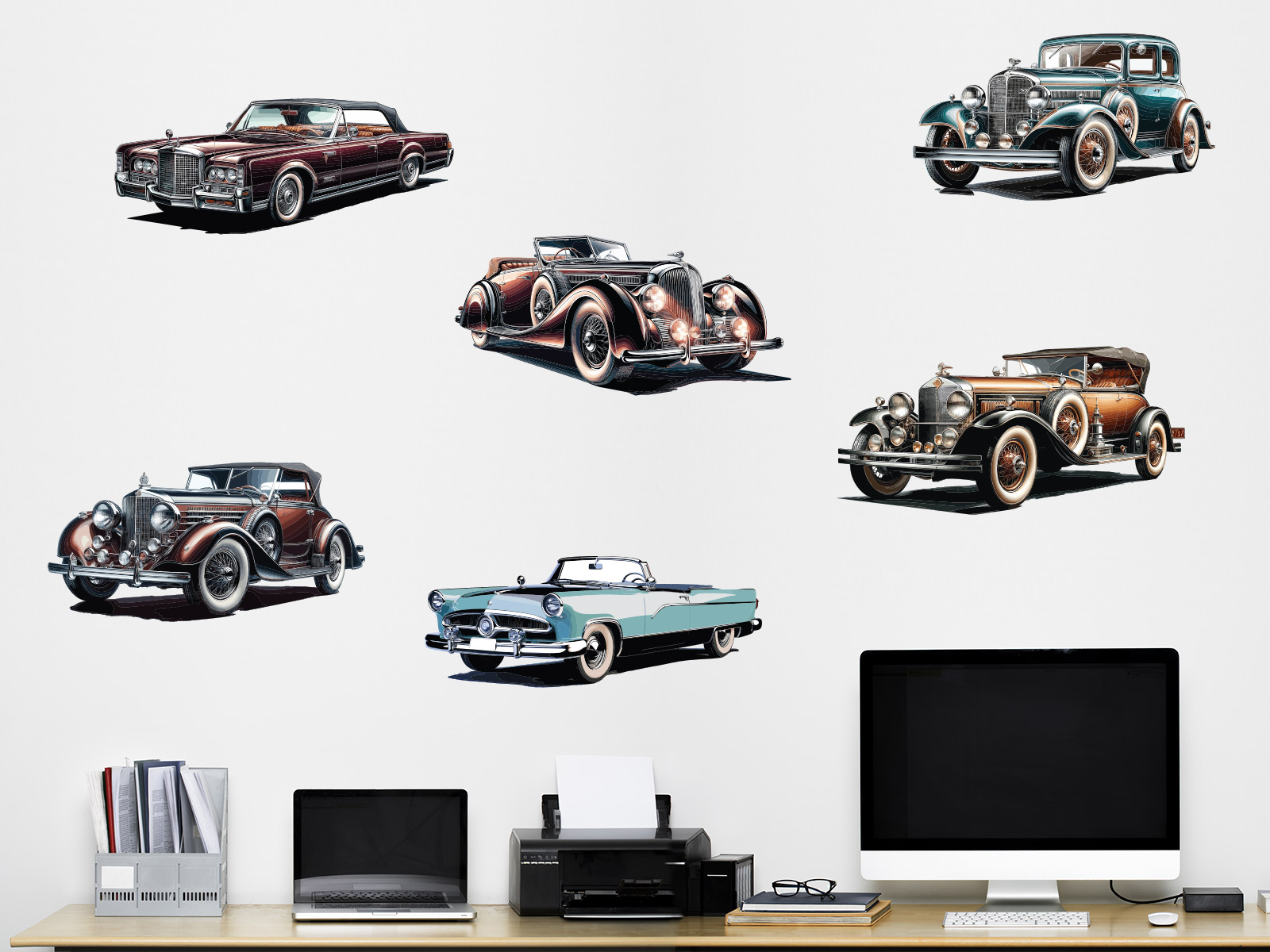 Samolepka na zeď „Auta veteráni“ přenáší do interiéru kouzlo zlaté éry automobilismu, kdy každé auto mělo osobitý charakter, elegantní křivky a precizní detaily. Kolekce ikonických veteránů v sobě spojuje noblesu, nostalgii a technickou krásu historických vozů, které dodnes vzbuzují obdiv milovníků klasiky. Ilustrace působí realisticky a zároveň stylově, takže vytvoří výrazný vizuální prvek a atmosféru nadčasového luxusu. Samolepka je ideální volbou pro všechny, kdo mají slabost pro historii, řemeslné zpracování a jedinečný design starých automobilů, a chtějí dodat prostoru osobitý a elegantní akcent.