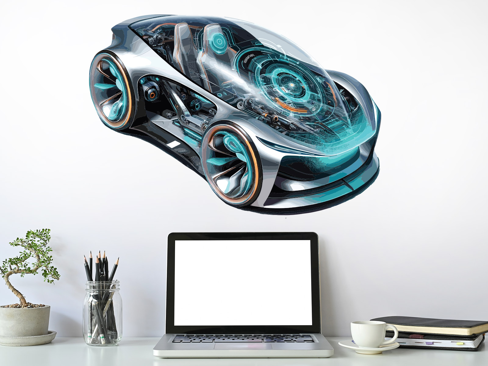 Samolepka na zeď „Auto z budoucnosti“ přináší do interiéru odvážnou vizi moderní mobility inspirovanou sci-fi estetikou a pokročilými technologiemi. Dynamické aerodynamické tvary, futuristické linie a průsvitné detaily s nádechem digitálního designu vytvářejí dojem lehkosti, rychlosti a inovace, jako by vůz pocházel z jiného světa. Tento motiv skvěle vynikne v moderním obývacím pokoji, studentském pokoji i pracovně a okamžitě se stane nepřehlédnutelným vizuálním prvkem, který podněcuje fantazii a zájem o technologie, design a budoucnost. Samolepka je ideální volbou pro všechny, kteří chtějí dodat prostoru originální, nadčasový a inspirativní charakter.