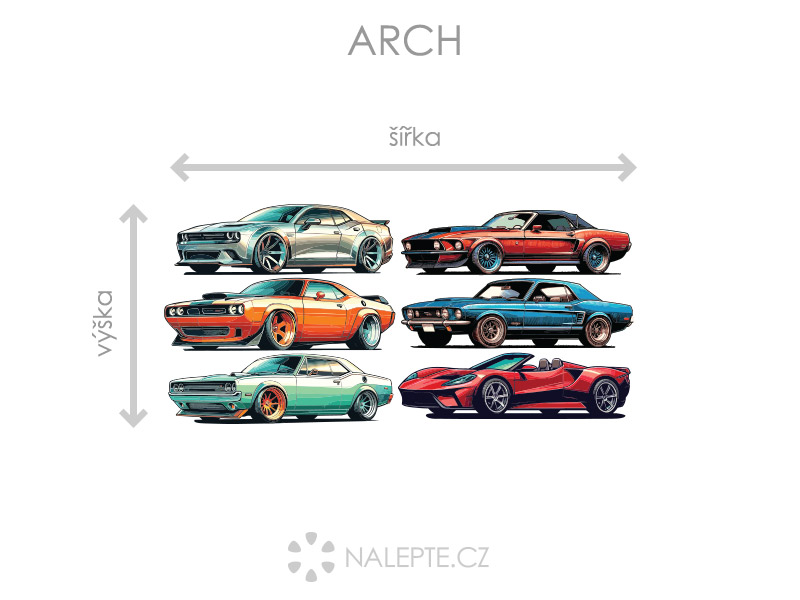 Arch = takto vám bude samolepka doručena. Každý prvek na archu je samostatná samolepka, jednotlivé části jednoduše od papírového podkladu odlepíte a nalepíte na zeď tak, aby složily výsledný motiv dle Vašich představ. Arch si můžete prohlédnout ve fotogalerii. Rozměr archu volíte v objednávce. Přehled předdefinovaných rozměrů (šířka x výška): a) arch 46 x 22 cm b) arch 75 x 35 cm c) arch 100 x 47 cm d) arch 200 x 94 cm Je možné zvolit i libovolný vlastní rozměr archu pomocí posuvníku či klikání na "Větší", "Menší"