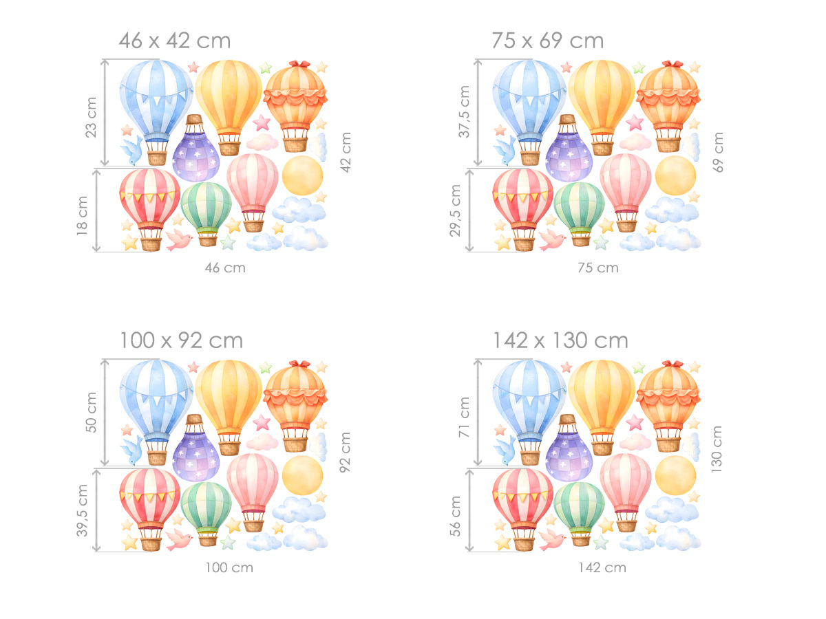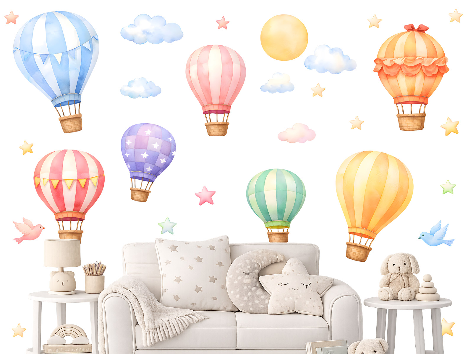 Jemné samolepky na zeď s barevnými horkovzdušnými balóny přinášejí do dětského pokoje pocit lehkosti, snění a klidné radosti. Pastelové barvy, měkký akvarelový styl a hravé detaily vytvářejí něžnou atmosféru, ve které se dítě může cítit bezpečně, uvolněně a plné fantazie. Balóny jako by tiše pluly po obloze nad postýlkou a každý den připomínaly, že svět je krásné místo plné dobrodružství, pohody a sladkých snů. Tyto samolepky na zeď dokážou proměnit obyčejnou stěnu v kouzelný prostor, který podporuje dětskou představivost, klidné usínání i radostné probouzení do nového dne.