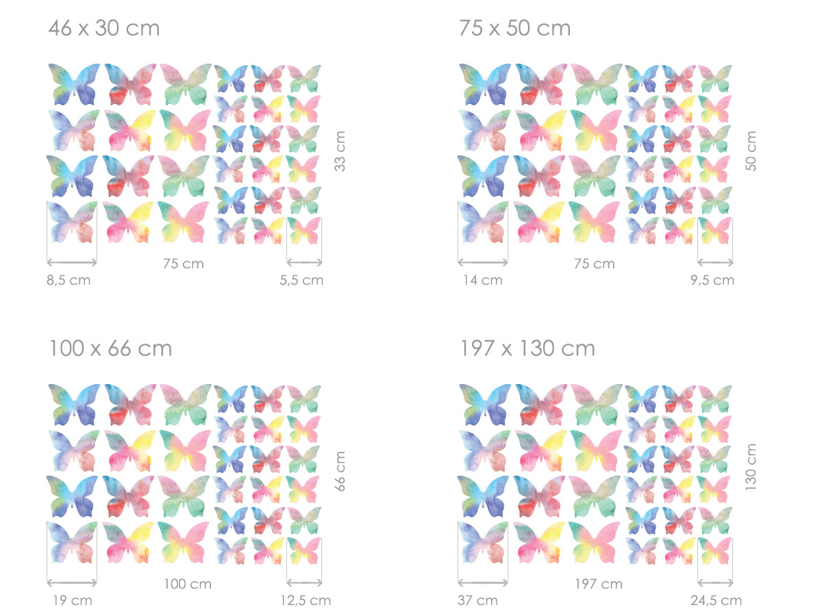 Samolepka na zeď „Barevní malovaní motýlci“ přináší do interiéru jemnou, akvarelovou eleganci a radostnou lehkost, která rozzáří každý pokoj. Sada desítek motýlků v harmonických pastelových odstínech modré, růžové, fialové, zelené i žluté vytváří dojem malovaného obrazu přímo na stěně. Každý motýlek je unikátní svými jemnými barevnými přechody a měkkými okraji, které působí jako dotek štětce na papíře. Po nalepení můžete motýly libovolně rozmístit – vytvořit iluzi roztančeného roje nad postelí, hravý barevný rozptyl v dětském pokoji nebo elegantní dekoraci v ložnici či pracovně. Díky jejich množství a rozmanitosti snadno vytvoříte kompozici přesně podle svých představ a dodáte prostoru poetickou a vzdušnou atmosféru.