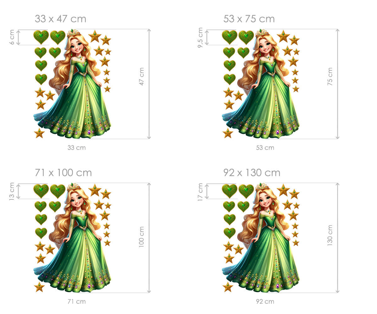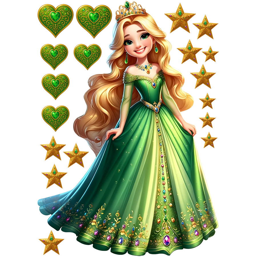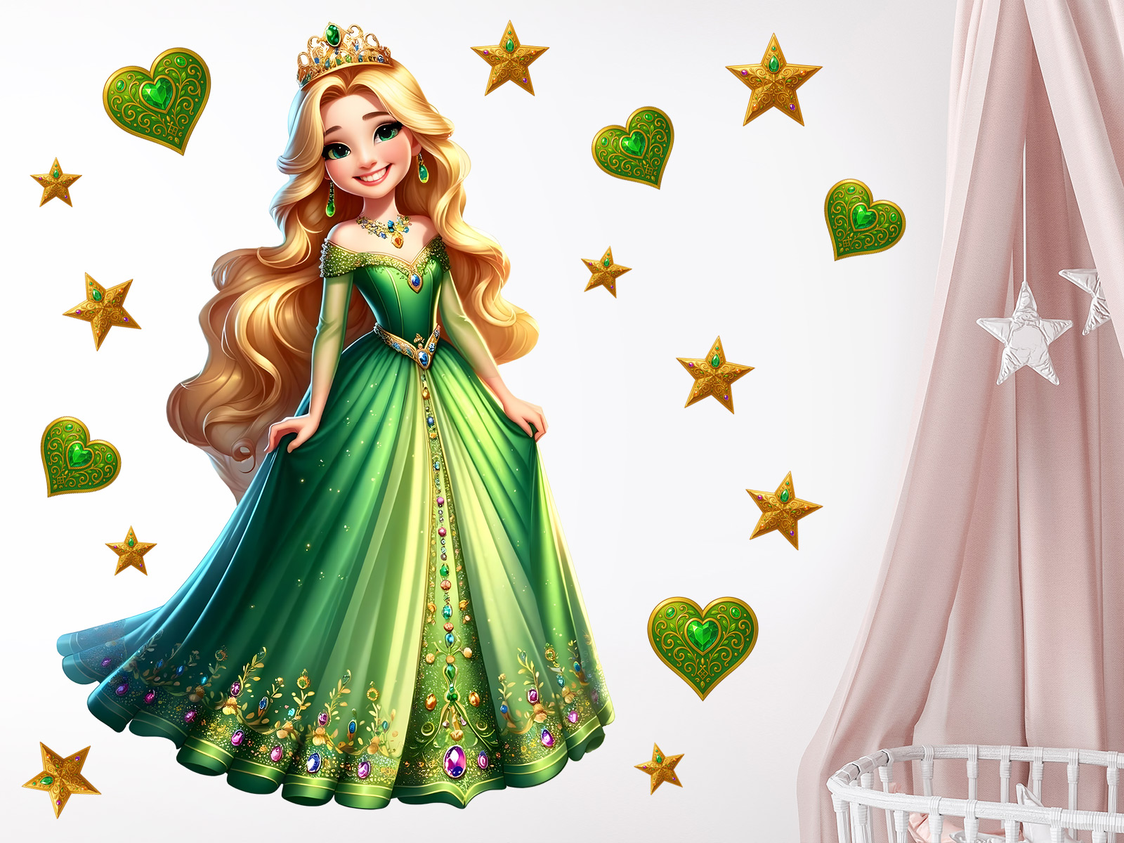 Proměňte dětský pokoj v kouzelnou pohádku s krásnou sadou samolepek Blond princezna. Tato elegantní princezna v třpytivých odstínech zelené je doplněna o zlaté hvězdičky a srdíčka se smaragdovými detaily, které dotvářejí kouzelnou atmosféru království snů. Co sada obsahuje: - Hlavní motiv princezny ve velkém formátu - Zářivé zlaté hvězdičky různých velikostí - Zelená srdíčka se zlatým lemováním