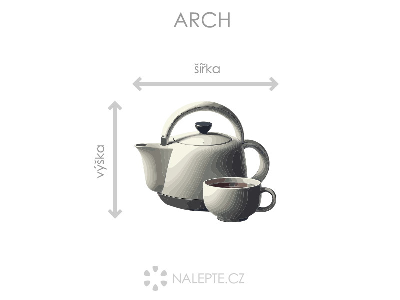 Arch = Arch si můžete prohlédnout ve fotogalerii. Rozměr archu volíte v objednávce. Přehled předdefinovaných rozměrů (šířka x výška): a) arch 20 x 17 cm b) arch 45 x 38 cm c) arch 75 x 64 cm Je možné zvolit i libovolný vlastní rozměr archu pomocí posuvníku či klikání na "Větší", "Menší" čajová konvice, konvička