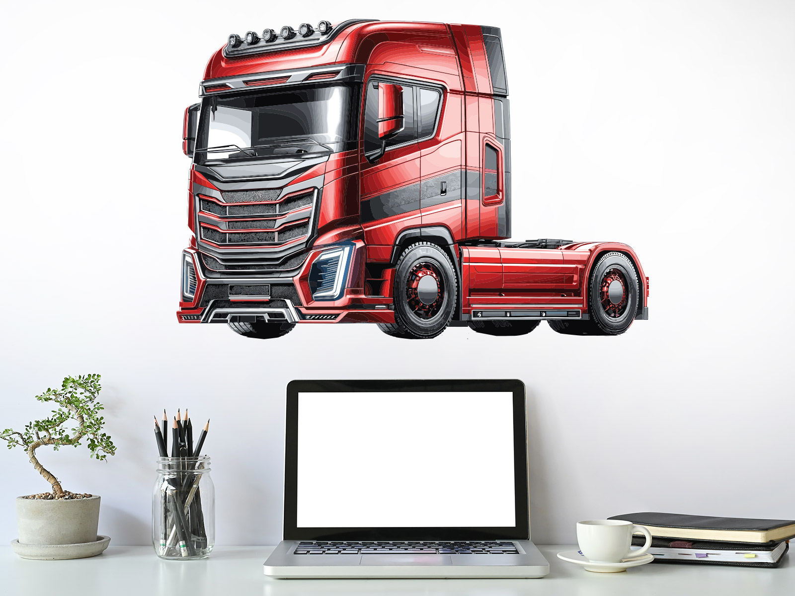 Samolepka na zeď „Červený kamion“ je výraznou dekorací, která okamžitě upoutá pozornost každého fanouška silniční dopravy a silných strojů. Moderní tahač v sytě červeném provedení působí dynamicky, sebevědomě a energicky, přičemž ostré linie kabiny a detailní zpracování podtrhují jeho robustní charakter. Motiv evokuje výkon, sílu a nekonečné cesty, po kterých kamiony brázdí silnice napříč kontinenty. Samolepka se stane dominantním prvkem interiéru a skvěle zapadne do dětského pokoje, pracovny nebo prostoru každého milovníka kamionů, kde vytvoří atmosféru inspirovanou světem dopravy a dálkových tras.