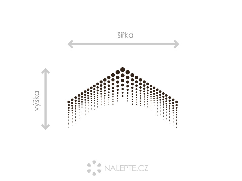 Různě velké kuličky uspořádané do tvaru stříšky. Trendy samolepka na zeď je jako stvořená do moderních interiérů. Povedený designerský kousek učiní Váš interiér naprosto jedinečným! Motiv skvěle vynikne obzvláště nad postelí anebo sedačkou.