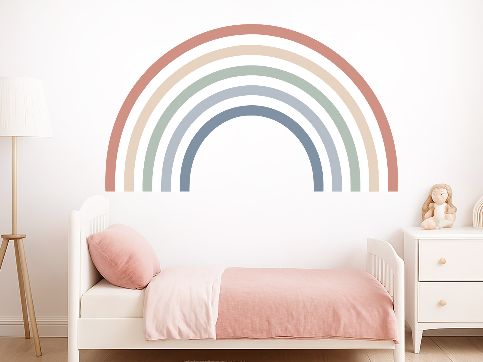 Samolepka na zeď „Duha nordic“ je elegantní a nadčasový doplněk do dětského pokoje, který zaujme svou jednoduchostí a jemnou barevností inspirovanou severským stylem. Oblouková duha v tlumených pastelových tónech působí klidně, harmonicky a přirozeně, díky čemuž krásně zapadne do moderních i minimalistických interiérů. Motiv je navržen tak, aby nepůsobil rušivě, ale naopak vytvářel příjemnou a vyváženou atmosféru podporující pocit bezpečí a pohody. Duha se stává jemným vizuálním akcentem nad postýlkou, v hracím koutku nebo v klidové zóně pokoje a dodává prostoru útulný, čistý a esteticky vyvážený vzhled, který poroste spolu s dítětem.