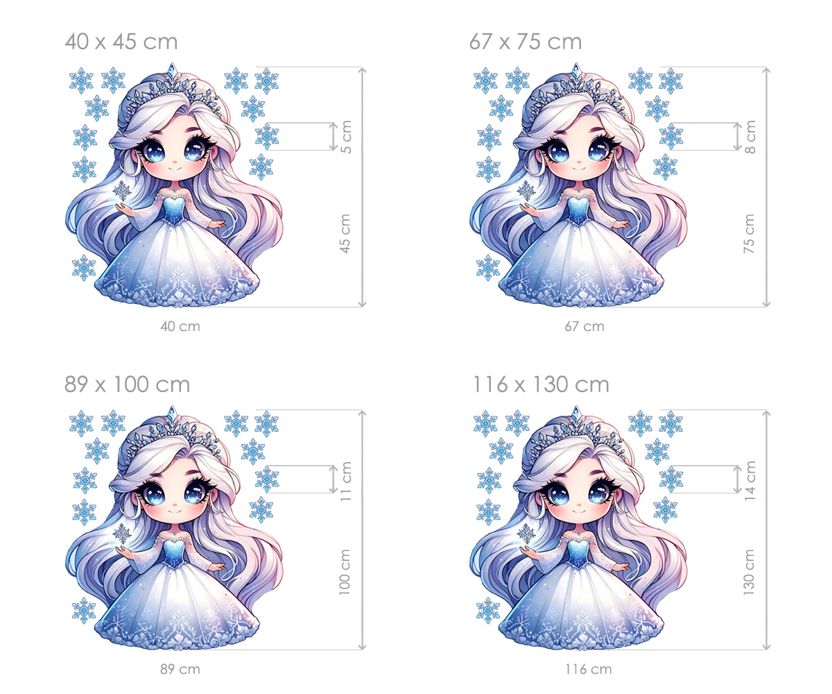 Proměňte dětský pokoj v kouzelnou ledovou říši s naší sadou „Frozen ledová princezna“! Tato nádherná samolepková sada přináší okouzlující princeznu v třpytivých odstínech modré a bílé, doplněnou o jemné sněhové vločky, které vytvoří dokonalou zimní atmosféru. Samolepky jsou tištěné ve vysokém rozlišení na kvalitní samolepicí fólii, vhodné pro hladké povrchy – stěny, nábytek, dveře i zrcadla. Aplikace je velmi snadná – stačí sejmout a nalepit. Obsah sady: - Ledová princezna - 11 modrobílých sněhových vloček v různých velikostech