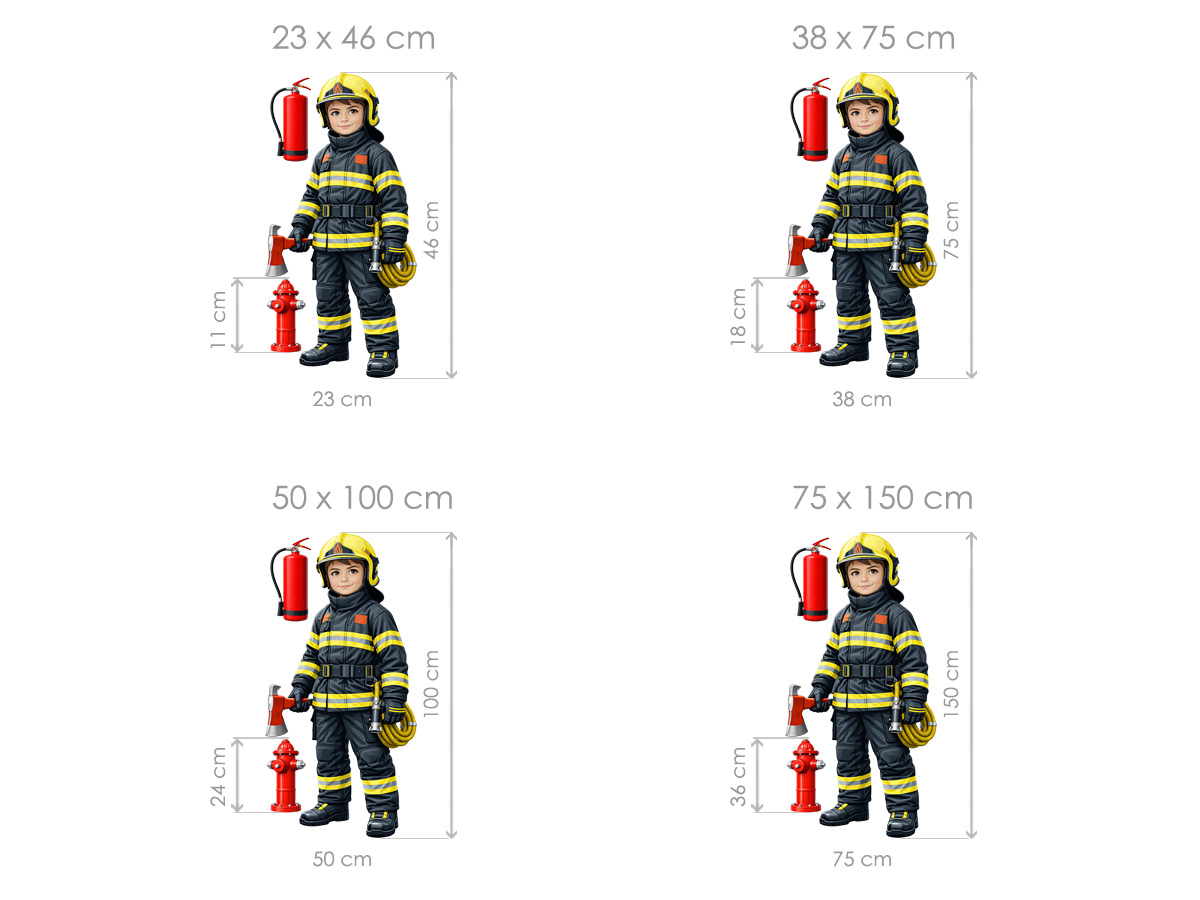 Samolepka na zeď „Chlapec hasič“ je roztomilou a zároveň inspirativní dekorací, která potěší každé dítě se snem stát se hrdinou. Motiv zobrazuje usměvavého chlapce v realistické hasičské výstroji s helmou, sekerou a dalšími typickými doplňky, díky čemuž působí věrohodně, ale zároveň přátelsky a dětsky. Celkový vzhled podporuje fantazii, hraní na záchranáře a přirozený obdiv k práci hasičů, kteří pomáhají a chrání ostatní. Samolepka krásně oživí dětský pokoj, herní koutek nebo školku a vytvoří atmosféru odvahy, dobrodružství a pozitivních vzorů, se kterými se děti snadno ztotožní.