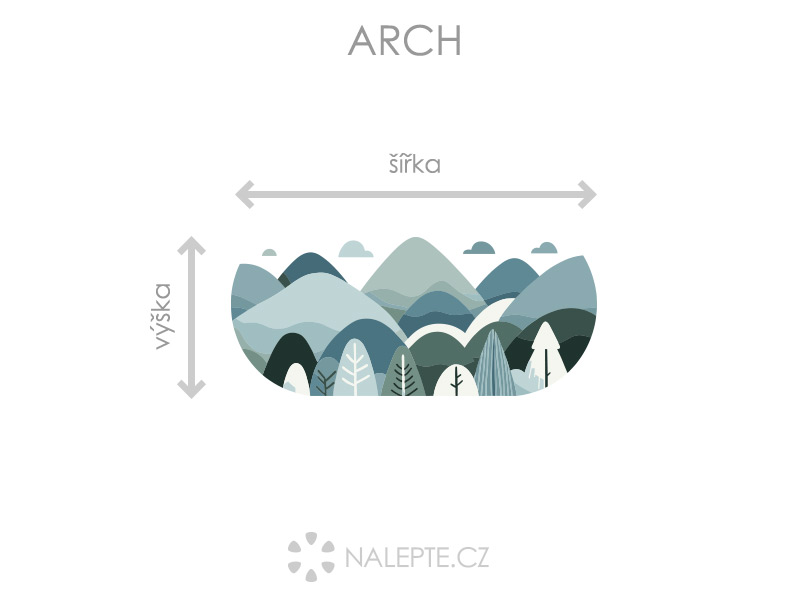Arch = takto vám budou samolepky doručena. Každý prvek (mráčky lepíte samostatně) na archu je samostatná samolepka, jednotlivé části jednoduše od papírového podkladu odlepíte a nalepíte na zeď tak, aby složily výsledný motiv dle Vašich představ. Arch si můžete prohlédnout ve fotogalerii. Rozměr archu volíte v objednávce. Přehled předdefinovaných rozměrů (šířka x výška): a) arch 46 x 20 cm b) arch 75 x 33 cm c) arch 100 x 43 cm d) arch 130 x 56 cm e) arch 230 x 100 cm Je možné zvolit i libovolný vlastní rozměr archu pomocí posuvníku či klikání na "Větší", "Menší"