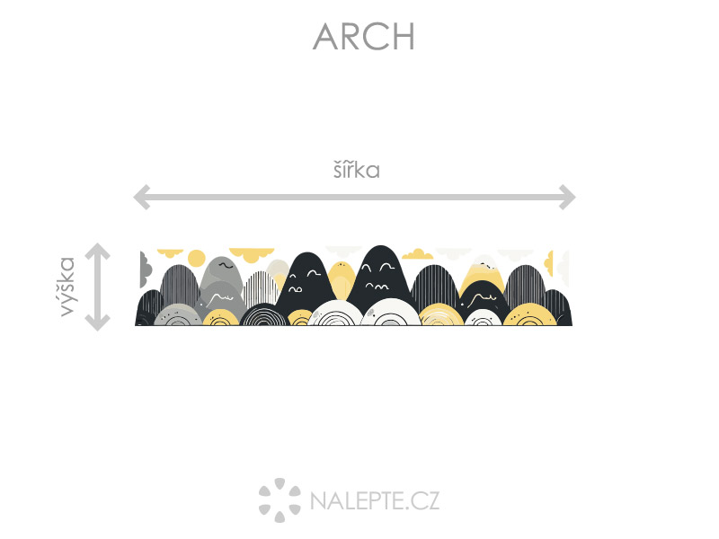 Arch = takto vám budou samolepky doručeny. Každý prvek na archu je samostatná samolepka, jednotlivé části jednoduše od papírového podkladu odlepíte a nalepíte na zeď tak, aby složily výsledný motiv dle Vašich představ. Arch si můžete prohlédnout ve fotogalerii. Rozměr archu volíte v objednávce. Přehled předdefinovaných rozměrů (šířka x výška): a) arch 100 x 18 cm b) arch 130 x 24 cm c) arch 250 x 46 cm d) arch 408 x 75 cm Je možné zvolit i libovolný vlastní rozměr archu pomocí posuvníku či klikání na "Větší", "Menší"