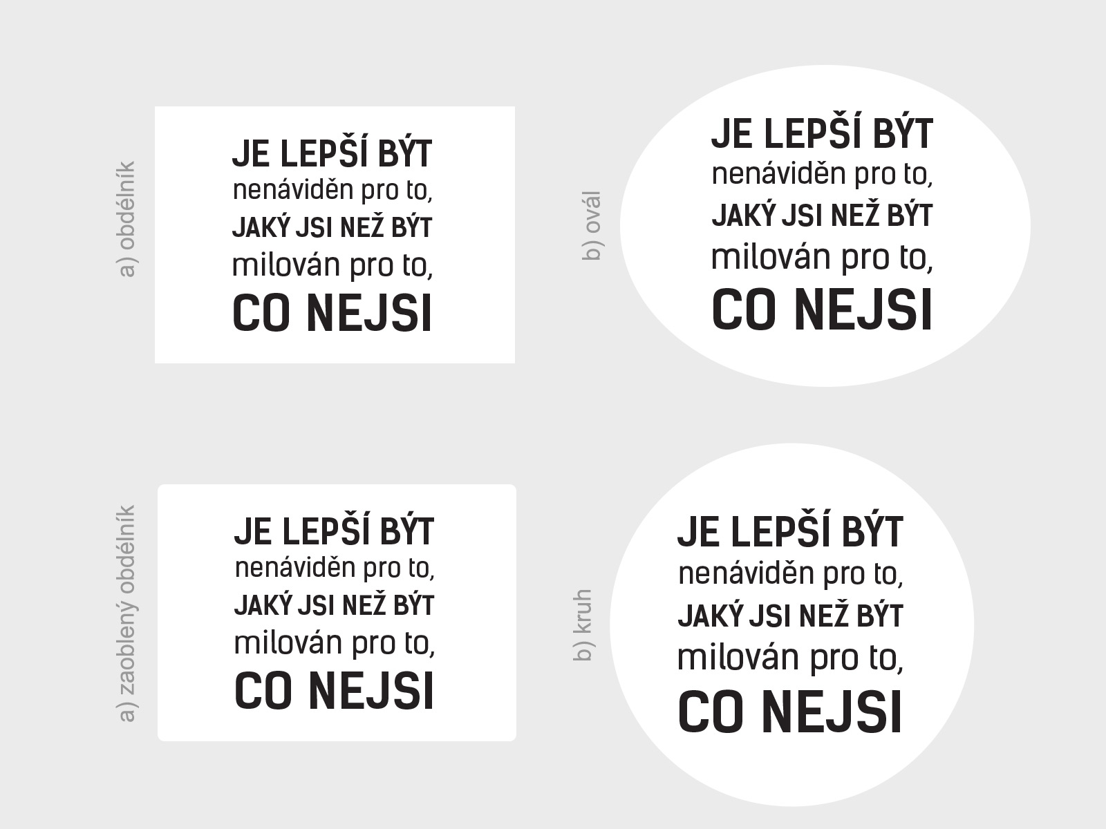 Pokud vám nevyhovují předdefinované rozměry, je možné zvolit vlastní rozměr pomocí posuvníku, můžete si také vybrat z cca 50 barev. Jedná se o tisk na bílou samolepící vinylovou fólii s tvarovým ořezem. Lepení je jednoduché a bez průhledné přenosové folie. Jde o kombinaci bílého pozadí + Vámi vybrané barvy. Tvar bílého pozadí je možné změnit. Lze vybrat a) obdélník, b) ovál, c) zaoblený obdélník, d) kruh viz fotogalerie. Pokud tedy máte zájem o jiný tvar než na hlavní fotografii, stačí v posledním kroku objednávky do pole poznámka napsat např. "obdélník". Obdržíte email s potvrzením a finálním náhledem. Není možné zvolit barvu textu: bílou 010 nebo jednu z metalických barev: 090 stříbrná, 091 zlatá, 092 měděná. Pokud zvolíte jednu z těchto barev budete kontaktováni ohledně změny barvy nebo zrušení objednávky. Textová samolepka na zeď s hlubokou myšlenkou, nad kterou by se měl zamyslet každý z nás. Samolepka je vhodná do každé místnosti. Jde o jednu z mnoha textových motivačních samolepek, které máme v nabídce.