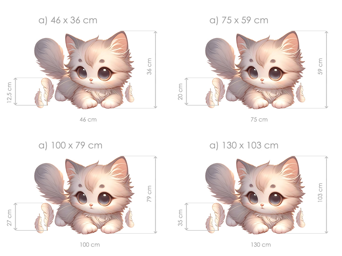 Vneste do dětského pokoje něhu a klid s touto roztomilou sadou samolepek „Koťátko“. Jemný design kočičky s velkýma očima a nadýchaným kožíškem působí mazlivě a hřejivě. Doplňují ji ladící ilustrace peříček, které dodají celé kompozici lehkost a pohyb. Balení obsahuje: 1× velkou samolepku koťátka 3× samostatná peříčka