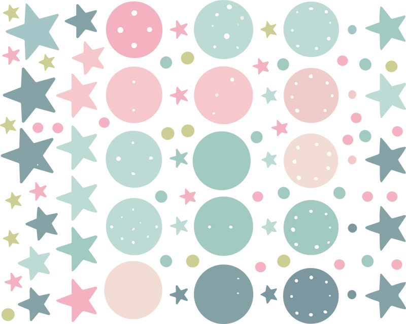 Jemná sada samolepek „Kroužky a hvězdy“ přináší do dětského pokoje klidnou, hravou atmosféru v pastelových tónech, které působí lehce a vzdušně. Kombinace kroužků, hvězdiček a drobných puntíků umožňuje vytvořit vlastní rozložení přesně podle prostoru i fantazie dítěte – motivy lze rozmístit rovnoměrně po celé stěně nebo je soustředit do výraznější kompozice nad postýlku či hrací koutek. Barevná paleta v tlumených odstínech růžové, mentolové, šedé a béžové se snadno sladí s interiérem holčičího i neutrálního pokoje a vytváří harmonické prostředí podporující klid, pohodu a dětskou představivost. Samolepky jsou ideální volbou pro moderní dětské pokoje, kde chcete dosáhnout něžného dekorativního efektu bez rušivých motivů.