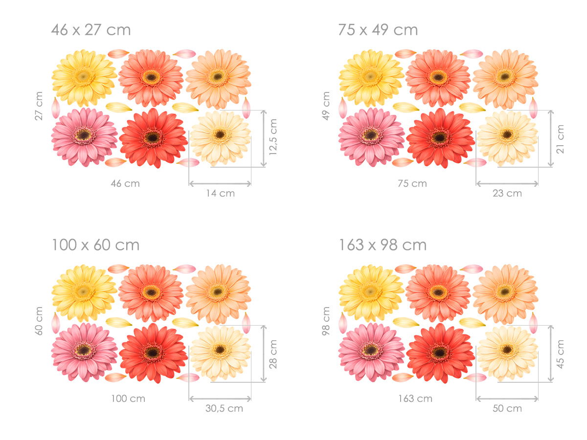 Hledali jste: Květy gerbery samolepky na zeď, Květy gerbery tapety na zeď, Květy gerbery dekorace na zeď, Květy gerbery nálepky na zeď