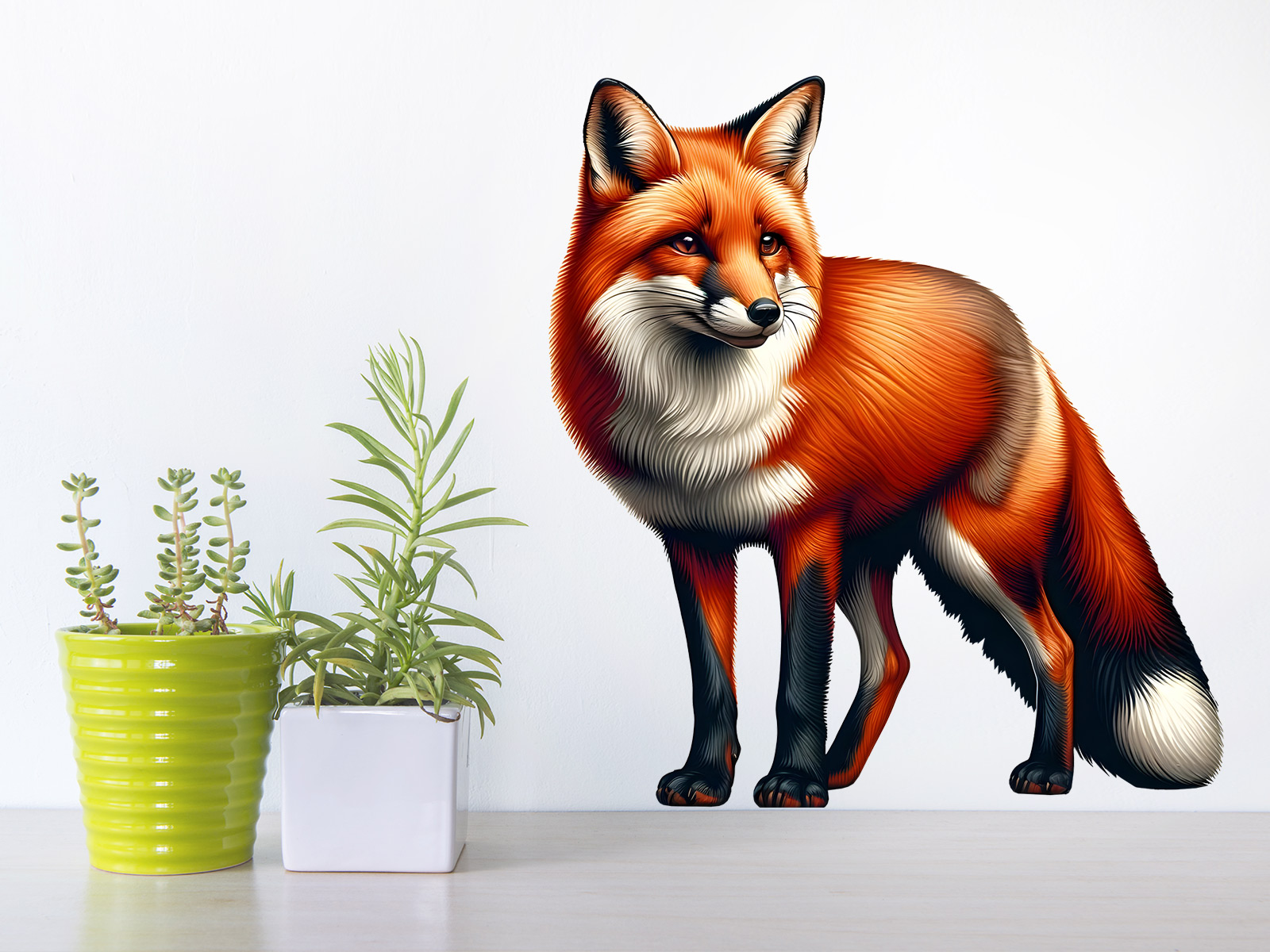 Samolepka na zeď „Liška“ přináší do interiéru působivou atmosféru lesa a eleganci divoké přírody v podobě nádherně zpracované ilustrace majestátní lišky. Její bohatá rezavá srst s jemnými barevnými přechody, precizně vykreslené detaily a realistický lesk dodávají zvířeti živý a dynamický charakter. Liška působí sebejistě a klidně, jako by se právě zastavila při tichém průzkumu okolí. Celek vyzařuje harmonii teplých tónů a elegantních linií, díky čemuž se samolepka stane výraznou dekorací, která oživí obývací pokoj, ložnici i moderní přírodní interiér.