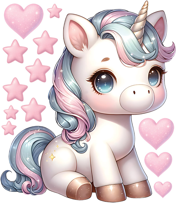 Samolepka na zeď „Magický jednorožec“ přinese do dětského pokoje kouzlo, jemnost a radost. Tento rozkošný jednorožec s pastelově růžovou a modrou hřívou a zářivýma očima působí přátelsky a snově, díky čemuž se stane oblíbeným společníkem každé malé princezny. Součástí archu jsou i doplňkové motivy srdíček a hvězdiček, které umožní vytvořit si na zdi vlastní kouzelnou kompozici. Ideální dekorace, která promění dětský pokoj v pohádkové království plné fantazie.
