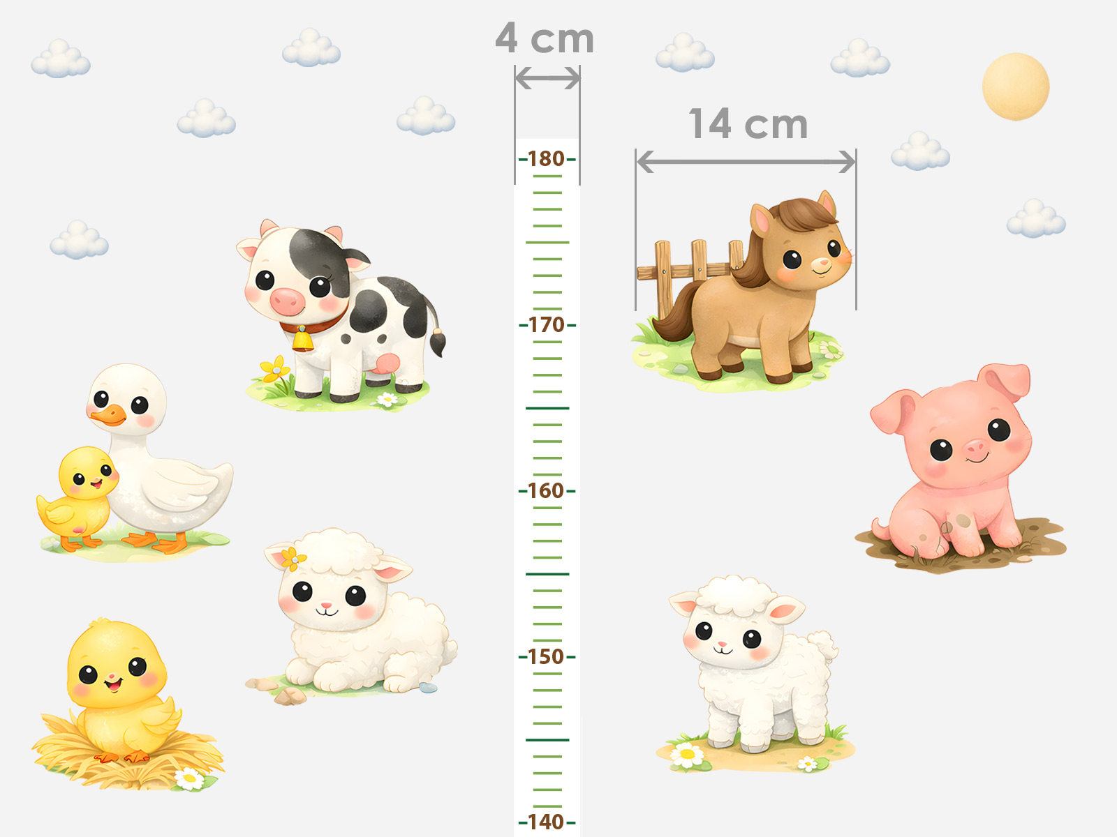 Samolepka na zeď Metr mláďata z farmy je nejen krásnou dekorací, ale i praktickým doplňkem do dětského pokoje. Umožňuje hravou formou sledovat růst dítěte a zároveň vytváří veselou a přátelskou atmosféru.