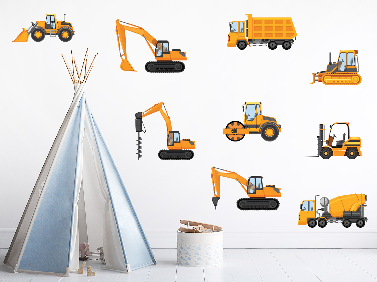 Proměňte dětský pokoj v pořádné staveniště plné velkých strojů! Sada „Náklaďáky a bagry“ potěší všechny malé milovníky techniky, bagrů a stavebních aut. Najdete zde realisticky zpracované stavební stroje – bagr, buldozer, náklaďák, válec, míchačka, vysokozdvižný vozík i vrtný stroj. Každý detail je promyšlený a vytvořený v profesionální kvalitě – samolepky jsou výrazné, ale zároveň působí čistě a esteticky. Dětský pokoj tak získá moderní a hravý vzhled, který inspiruje ke stavění, tvoření a hraní. Skvěle se hodí pro: - klučičí pokojíčky s tématem stavby, techniky nebo města - oživení prostoru nad postelí, stolem nebo poličkou - kombinaci s dopravními nebo industriálními motivy