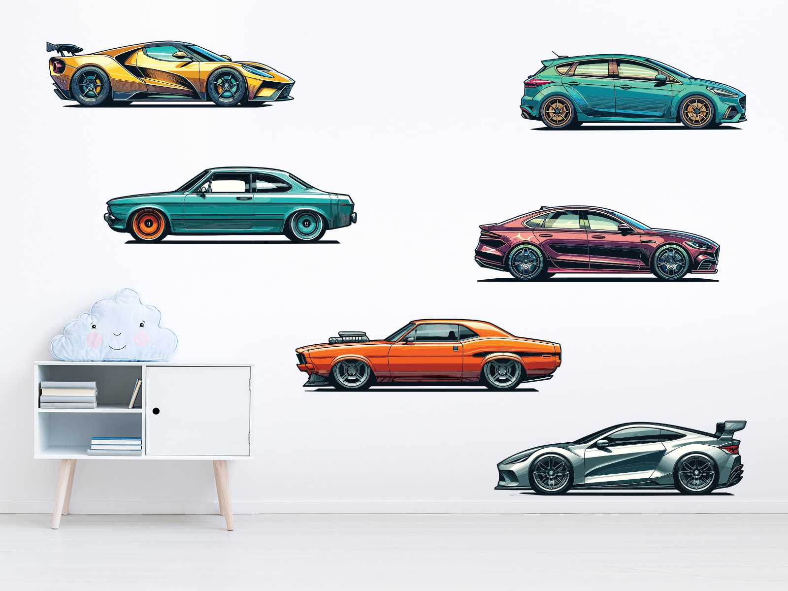 Samolepky na zeď „Osobní auta“ přináší do dětského pokoje energii, styl a rychlost v podobě šestice detailně ilustrovaných automobilů, které potěší každého malého nadšence do aut. Na archu najdete pestrou kombinaci sportovních vozů, elegantních sedanů i charismatických retro modelů – každý z nich v jedinečné barevné paletě a s precizně vykreslenými detaily karoserie, kol i světel. Díky této rozmanitosti lze vytvořit na zdi dynamickou scénu závodní dráhy, městského provozu nebo sbírky oblíbených aut. Samolepka je ideální jako estetické doplnění pokoje, které podpoří dětskou fantazii, oživí prostor a zároveň nabídne možnost hravého rozmístění jednotlivých aut dle vlastního vkusu.