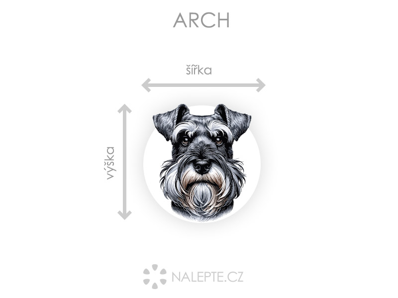 Arch = Arch si můžete prohlédnout ve fotogalerii. Rozměr archu volíte v objednávce. Přehled předdefinovaných rozměrů (šířka x výška): a) arch 20 x 20 cm b) arch 44 x 45 cm c) arch 69 x 70 cm d) arch 98 x 100 cm d) arch 118 x 120 cm Je možné zvolit i libovolný vlastní rozměr archu pomocí posuvníku či klikání na "Větší", "Menší" Pořiďte si samolepku na zeď s motivem psa knírače. Tento milý čtyřnohý kamarád ozvláštní každý interiér a přinese do něj veselou atmosféru.