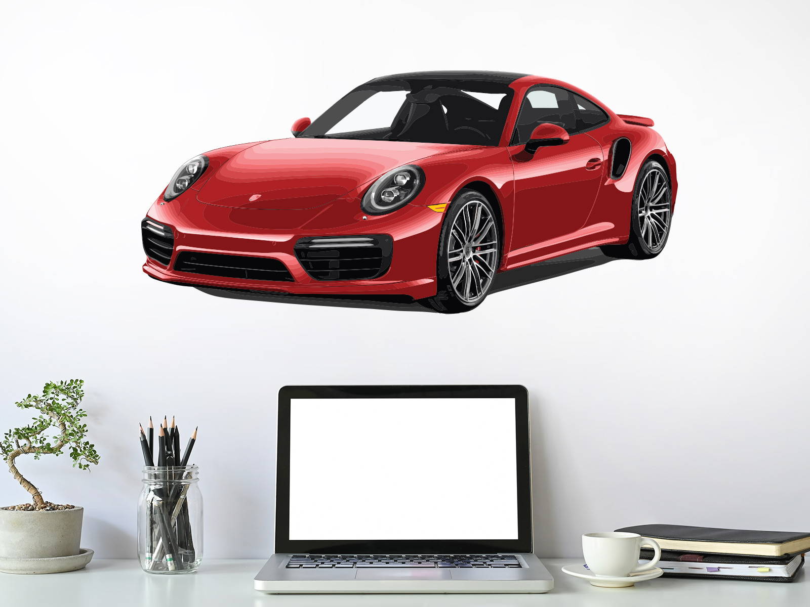 Samolepka na zeď „Porsche 911“ přináší do interiéru ikonický design jednoho z nejslavnějších sportovních vozů všech dob, který je symbolem výkonu, elegance a nadčasového stylu. Detailně zpracovaná ilustrace věrně zachycuje charakteristické linie, dynamický postoj i sportovní siluetu vozu, díky čemuž působí realisticky a zároveň velmi esteticky. Skvěle se hodí do moderních obývacích pokojů, pracoven, kanceláří i pokojů automobilových nadšenců, kde se stane výrazným vizuálním prvkem a jasným středem pozornosti. Samolepka dodá prostoru pocit rychlosti, luxusu a exkluzivity a potěší každého, kdo obdivuje precizní techniku a legendární automobilový design.