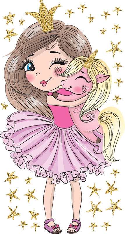 Samolepka na zeď „Princezna a jednorožec“ vnese do dětského pokoje jemnost, kouzlo a pohádkovou atmosféru. Roztomilá princeznička v růžových šatech objímá svého kouzelného jednorožce, zatímco kolem nich září drobné hvězdičky, které vytvářejí hřejivý a veselý dojem. Jemné pastelové barvy a něžné detaily dělají z této samolepky krásnou dekoraci, která zútulní každý dívčí pokoj. Motiv je dodáván na archu, ze kterého lze jednotlivé části snadno odlepit a umístit podle vlastní fantazie. Instalace je jednoduchá – bez lepidla, bez nepořádku, jen sejmout, přitlačit a hotovo.