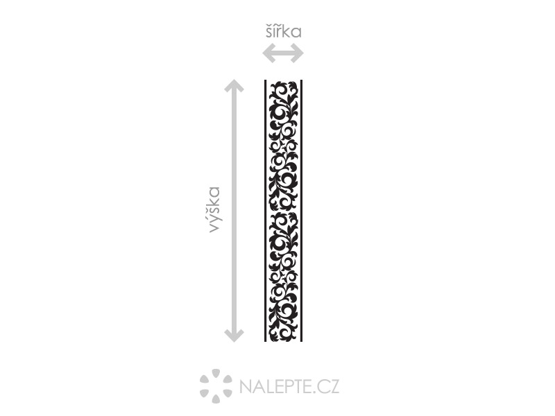 Moderní rostlinná dekorace na zeď vhodná do ložnic, obývacích pokojů i kuchyní. Nevíte, jak zaplnit kus prázdného místa na vaší bílé zdi? Toto je ideální volba. Jedná se vždy o bílý podklad - bílou samolepící fólii, která je potištěna ornamenty ve vámi vybrané barvě. Je možné volit vlastní rozměr, tedy výšku pruhu přesně přizpůsobit výšce vaší zdi. Není možné zvolit bílou barvu 010 nebo jednu z metalických barev: 090 stříbrná, 091 zlatá, 092 měděná. Pokud zvolíte jednu z těchto barev budete kontaktováni ohledně změny barvy nebo zrušení objednávky.