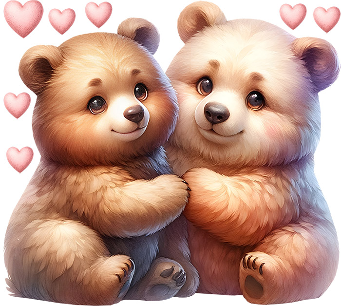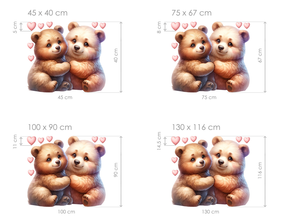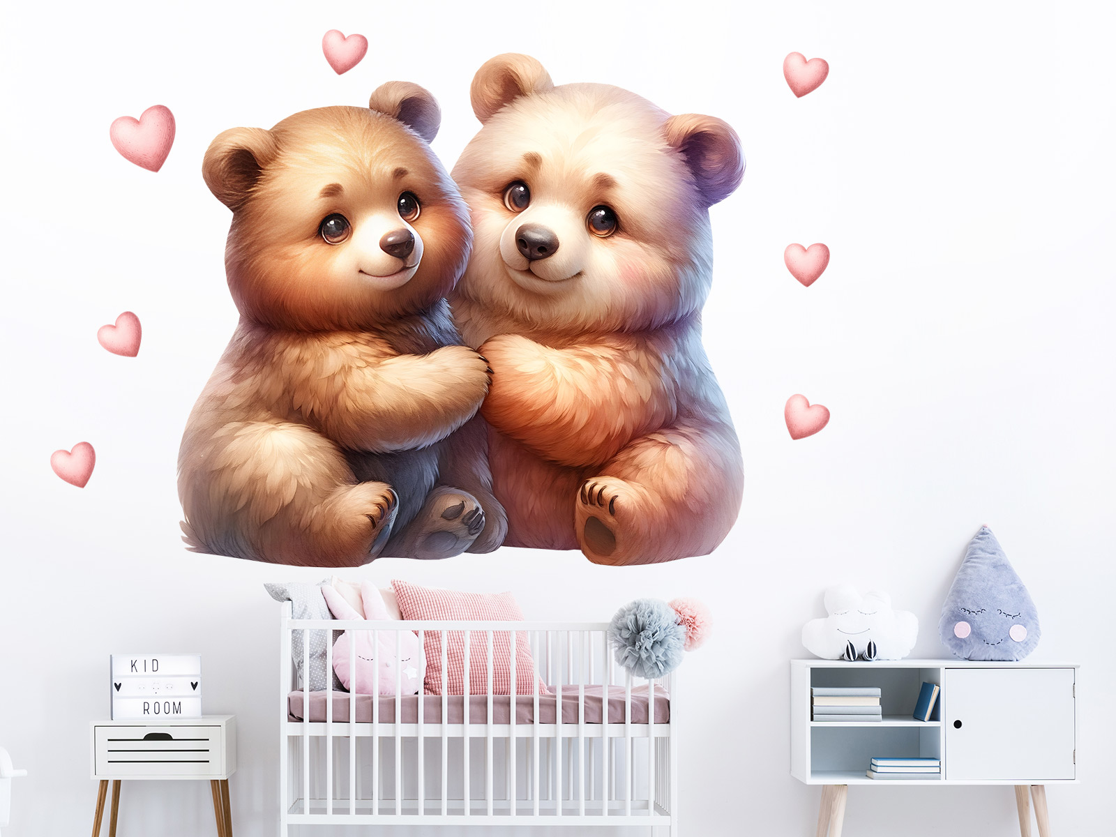 Samolepka na zeď „Roztomilí medvídci“ promění každý dětský pokojík v útulné místo plné něhy, radosti a bezpečí. Dva plyšově hebcí medvídci, kteří se k sobě láskyplně tulí, působí hřejivě a přátelsky – přesně tak, jak to děti milují. Jemné světelné přechody, detailně vykreslená srst a velká rozzářená očka dávají ilustraci téměř životní něhu, takže medvídci působí jako živí mazlíčci. Srdíčkové doplňky dodávají celé kompozici hravost a snadno vyplní prostor nad postýlkou, komodou nebo herním koutkem. „Roztomilí medvídci“ jsou ideální volbou pro rodiče, kteří chtějí do pokoje vnést klid, pohodu a něžnou atmosféru – a dětem vytvořit místo, kde se budou cítit milované a v bezpečí.
