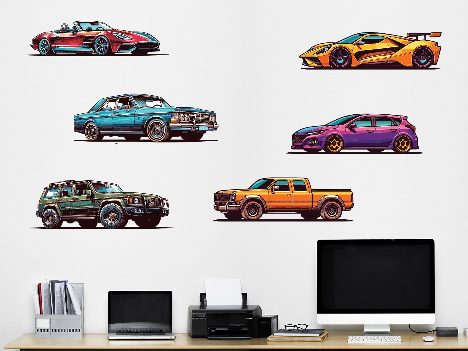 Hledali jste: Sada aut samolepka na zeď, Sada aut nálepky na zeď, Sada aut dekorace na stěnu, Sada aut samolepící dekor na stěny, Sada aut samolepící tapety na zeď