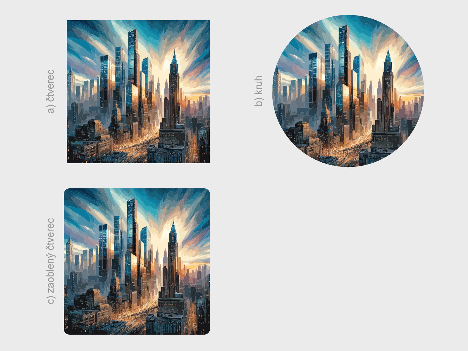 Tvar je možné změnit. Lze vybrat a) čtverec, b) kruh, c) zaoblený čtverec viz fotogalerie. Pokud tedy máte zájem o jiný tvar než na hlavní fotografii, stačí v posledním kroku objednávky do pole poznámka napsat např. "kruh". Jedná se o tištěný samolepící plakát - imitace malby Je možné zvolit i libovolný vlastní rozměr archu pomocí posuvníku či klikání na "Větší", "Menší"