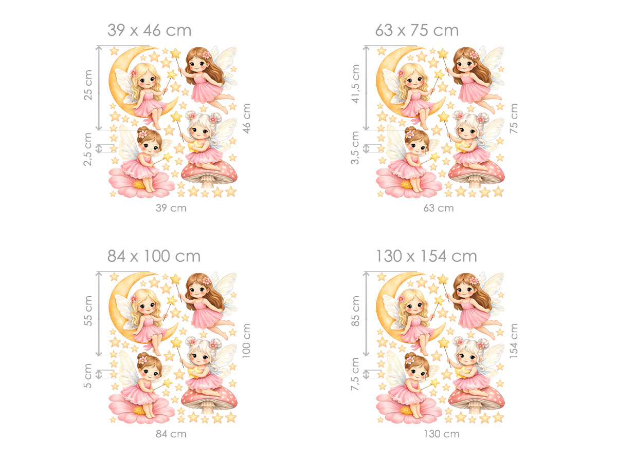 Jemné samolepky s motivem víl v růžových šatech přinášejí do dětského pokoje kouzelnou a něžnou atmosféru plnou hvězdiček, měsíčku a pohádkové fantazie. Víly jsou zpracované v detailním, měkkém stylu s přívětivými výrazy a pastelovými barvami, které působí klidně a harmonicky, takže krásně doplní prostor nad postelí, komodou i hracím koutkem. Celek vytváří lehký, snový dojem, který podporuje představivost, pocit bezpečí a radost z vlastního pohádkového světa každý den.