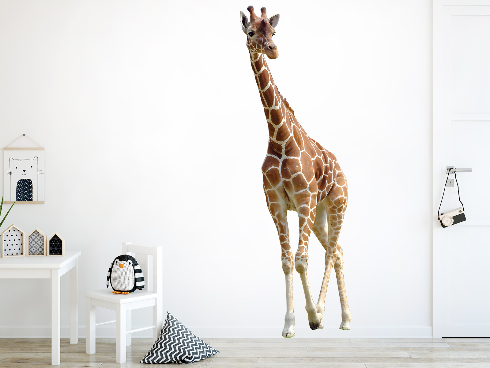 Samolepka na zeď „Žirafa“ přináší do dětského pokoje i moderního interiéru elegantní motiv jednoho z nejikoničtějších zvířat africké přírody. Realisticky zpracovaná silueta s jemnými detaily srsti a přirozenými proporcemi působí lehce, vzdušně a velmi přirozeně, díky čemuž se motiv stává výrazným, ale zároveň klidným prvkem prostoru. Žirafa svou výškou a vznešeným postojem podporuje dětskou fantazii, pocit objevování a vztah k přírodě, zatímco neutrální barevnost se snadno kombinuje s ostatním vybavením pokoje. Součástí produktu je arch se samolepkou a náhledová vizualizace, která pomáhá představit si výsledný vzhled motivu na stěně v reálném interiéru.