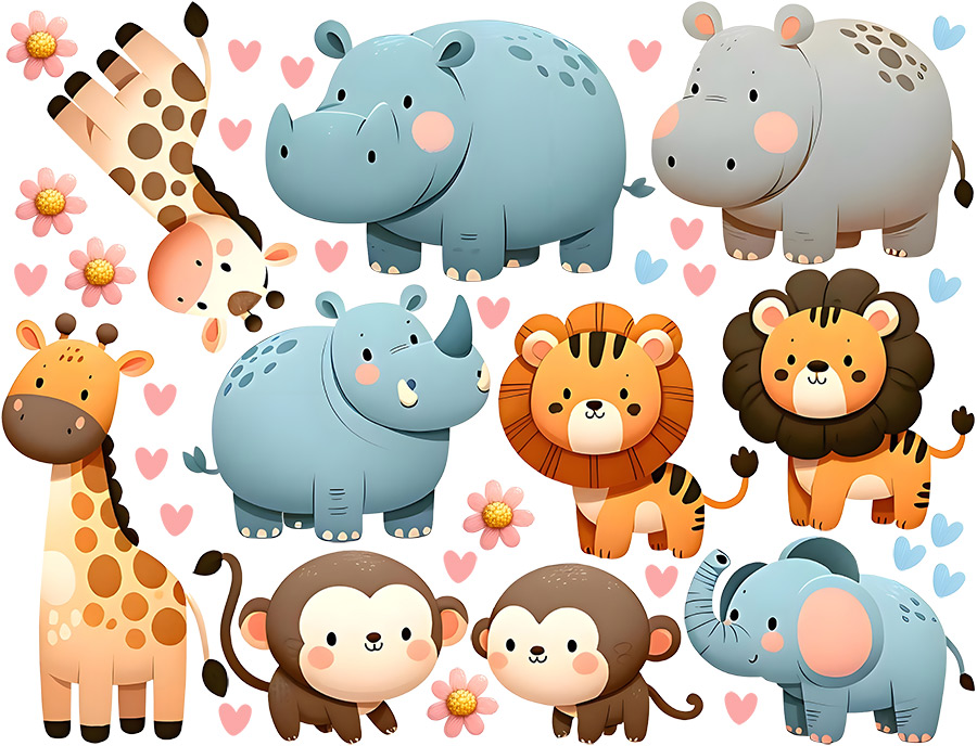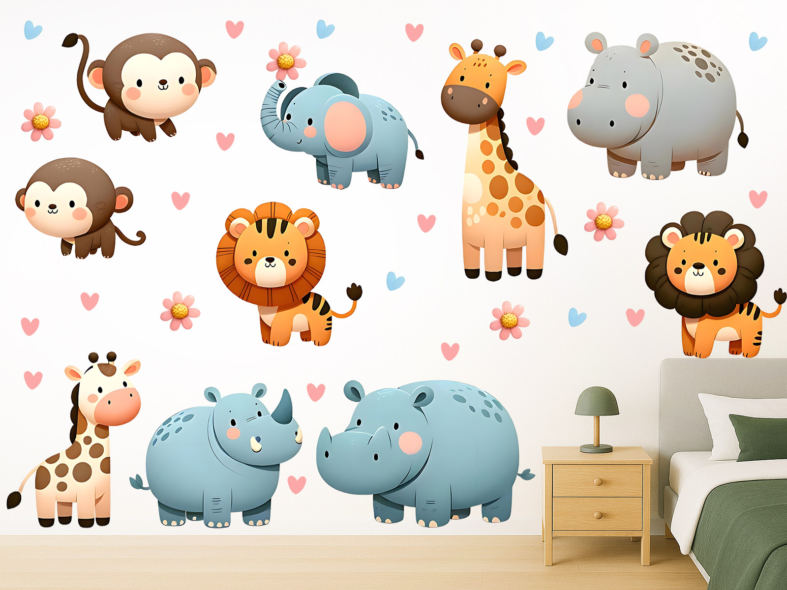 Samolepka „Zvířátka ze ZOO“ vnese do dětského pokoje radostnou atmosféru plnou hravosti, barev a milých postaviček, které okouzlí na první pohled. Součástí setu jsou roztomilé ilustrace oblíbených zvířátek – žiraf, nosorožců, hrocha, tygříka, lva, sloníka i veselých opiček – zpracované v moderním a přátelském stylu s jemnými pastelovými barvami a kulatými tvary, které působí mimořádně příjemně a bezpečně pro malé děti. Každé zvířátko má laskavý výraz a působí, jako by bylo součástí jednoho velkého dobrodružného příběhu ze světa safari. Na přiloženém archu najdete všechny motivy rozložené tak, abyste si mohli vytvořit vlastní kompozici podle prostoru v pokoji i fantazie. Výsledkem je hravá, veselá a harmonická dekorace, která dětem zpříjemní každý den a promění jejich pokoj v malé kouzelné ZOO.